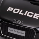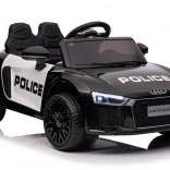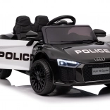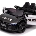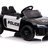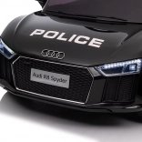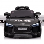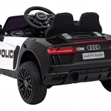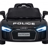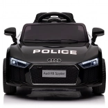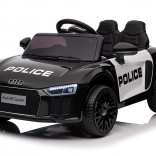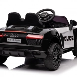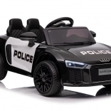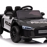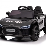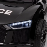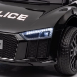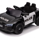 Stylowy elektryczny policyjny samochodzik AUDI R8 zachwyci małych kierowców realistycznym wyglądem i świetnym wyposażeniem. Oferuje 2× 35 W silniki, podwójny akumulator 2× 6 V/4,5 Ah, pilot 2.4G z 3 prędkościami i bezpiecznym STOP, miękkie koła EVA 19 × 7 cm z amortyzacją z przodu i z tyłu, płynny start, światła LED oraz zabawny panel audio USB/SD/MP3/AUX. Komfort zapewnia siedzisko z eko skóry z pasami i otwierane drzwi.