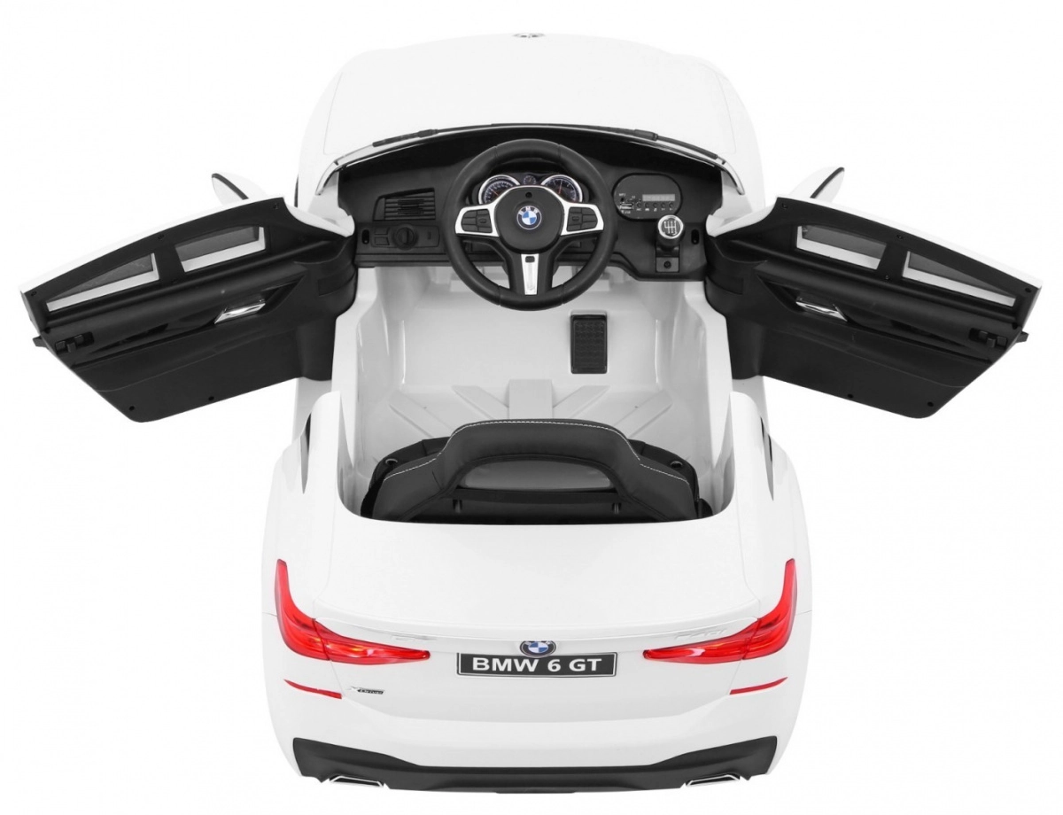 Licencjonowane autko BMW 6 GT wyróżnia się realistycznym wykonaniem oraz wygodnym siedziskiem z czarnej ekoskóry z pasami bezpieczeństwa. Dzięki płynnemu startowi jazda jest dla dzieci przyjemna i bezpieczna, a rodzice mają pełną kontrolę dzięki pilotowi 2,4 GHz z trzema prędkościami i awaryjnym przyciskiem STOP.