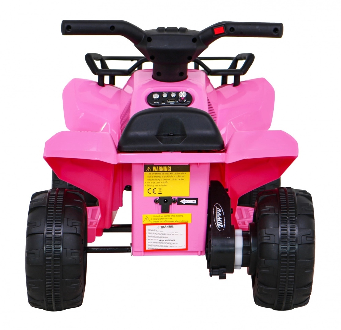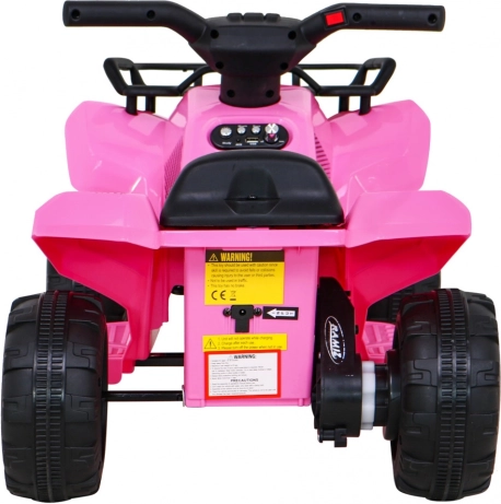 Stylowy dziecięcy quad Quad Storm zapewnia bezpieczną zabawę w domu i na zewnątrz. Ma napęd elektryczny 25 W, akumulator 6 V/4,5 Ah, przednie światła LED oraz panel audio z MP3/USB i AUX. Łatwa obsługa dzięki przyciskowi gazu na kierownicy i stabilne plastikowe koła dla płynnej jazdy.