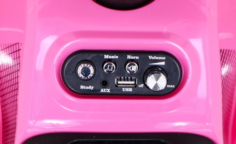 Muzyka i dźwięki zapewnią jeszcze więcej zabawy – wbudowany panel audio umożliwia odtwarzanie przez USB, AUX oraz wstępnie zainstalowane melodie. Ergonomiczne siodełko i odpowiedni prześwit wspierają komfortową i stabilną jazdę.
