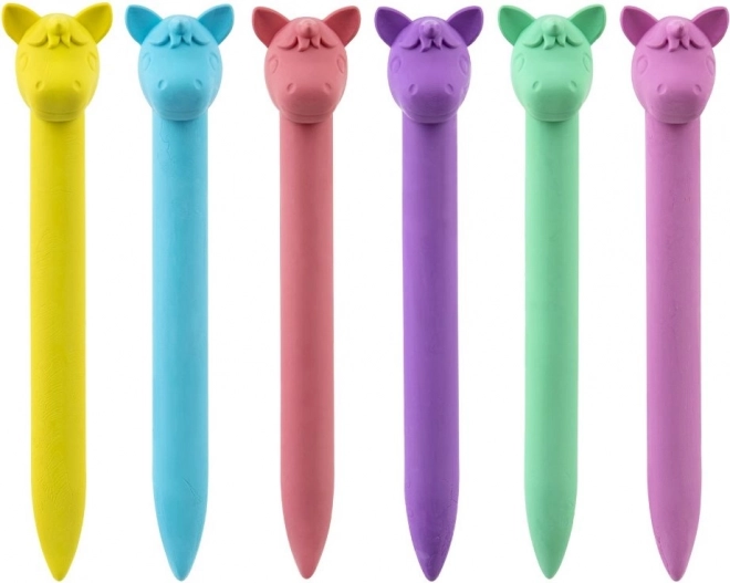 Kredki woskowe Grafix z motywem Wesołych jednorożców są idealne dla dzieci, które kochają kreatywne tworzenie. Każda kredka ma na końcu kształt główki uroczej jednorożki, co dodaje rysowaniu zabawy i oryginalności.