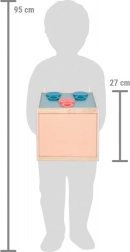 To nowoczesne drewniane pudełko sensoryczne i dotykowe zostało zaprojektowane tak, aby stymulować zmysły dziecka. Dzięki dwóm bocznym otworom i górnym odchylanym klapkom dzieci mogą eksplorować na różne sposoby – poprzez dotyk, wzrok, słuch i węch. Pudełko doskonale wspiera rozwój umiejętności motorycznych i sprawdzi się również do celów ergoterapeutycznych.