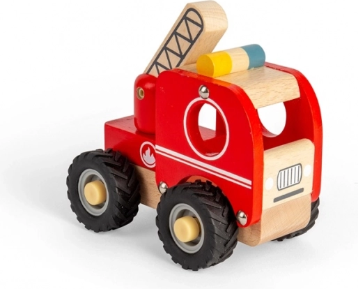 Drewniany wóz strażacki do zabawy w odgrywanie ról, idealny do rozwoju motoryki i koordynacji ręka-oko. Połączenie czerwonego lakieru i naturalnego drewna zachwyci każde dziecko.