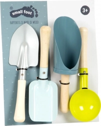 Zestaw łopatek dla dzieci Small Foot zawiera wszystko, czego potrzebują mali budowniczowie i ogrodnicy: ręczny szpadel, szufelka do nabierania, szufelka na śmieci i szufelka do węgla. Solidne metalowe głowice i gładkie drewniane rękojeści zapewniają długą żywotność i wygodny chwyt nawet podczas dłuższej zabawy.