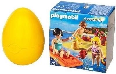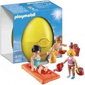 Odkryj figlarne jajko PLAYMOBIL, w którym kryje się letni zestaw ze scenerią plaży – mama z dziećmi korzystają z wody, dmuchanego materaca i budują zamki z piasku. Jajko jednocześnie służy jako skarbonka, więc dzieci mogą podczas zabawy także oszczędzać drobne. Idealne do kreatywnej zabawy, rozwijania wyobraźni i jako kolekcjonerski gadżet dla dzieci od 4 lat.