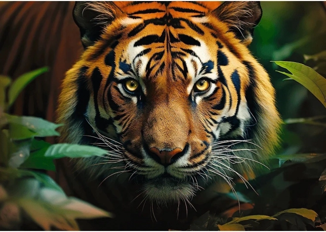 Odkryj piękno natury z puzzlami o 1000 elementach z motywem majestatycznego tygra ukrytego w listowiu. Po ułożeniu powstaje obraz o wymiarach 68,3 × 48 cm. Wykonane z naciskiem na materiały ekologiczne oraz specjalny papier kalandrowany ograniczający odblaski i zapewniający wygodniejsze układanie.