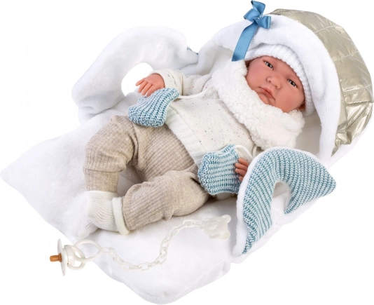 To eleganckie ubranko dla lalki NEW BORN wyróżnia się starannym wykonaniem i ponadczasowym designem. W zestawie znajdziesz dopasowane dzianinowe i tekstylne elementy do codziennych i zimowych stylizacji, uzupełnione o miękką matę z kapturem i praktycznymi paskami, dzięki którym lalkę można łatwo przenosić.