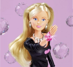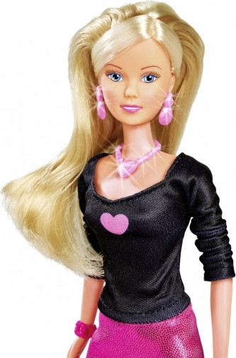 - Lalka STEFFI LOVE, 2 naszyjniki, 2 pary kolczyków, 2 bransoletki, torebka w kształcie serca, buty na obcasie