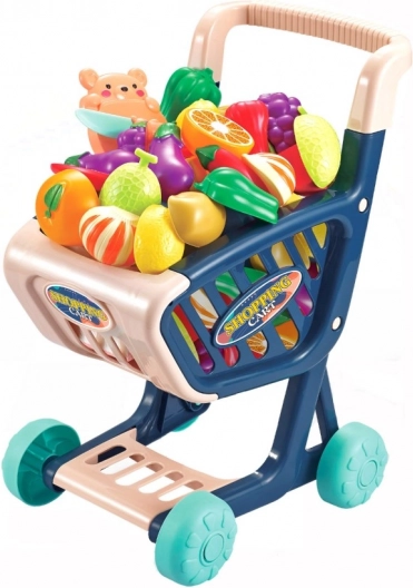 Uroczy dziecięcy wózek zakupowy z bogatym zestawem akcesoriów jest idealny dla małych gospodyń i małych sprzedawców. Zawiera plastikowe owoce i warzywa, które można „kroić” za pomocą bezpiecznych narzędzi. Zabawka wspiera rozwój motoryki małej, wyobraźni oraz naukę o produktach spożywczych poprzez zabawną zabawę w sklep.