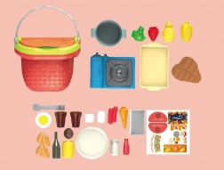 Uroczy koszyk piknikowy z akcesoriami dla małych smakoszy oferuje zabawną i kreatywną zabawę. Zawiera łącznie 27 elementów, w tym owoce, warzywa, butelkę i talerzyk, dzięki którym dzieci mogą przygotować własny piknik. Wspiera kreatywność, wyobraźnię i zabawy w odgrywanie ról w domu i na zewnątrz.