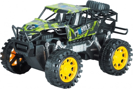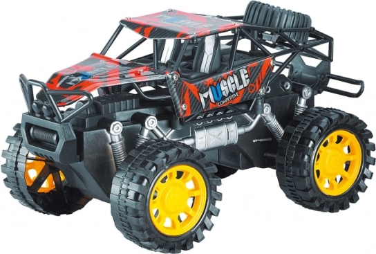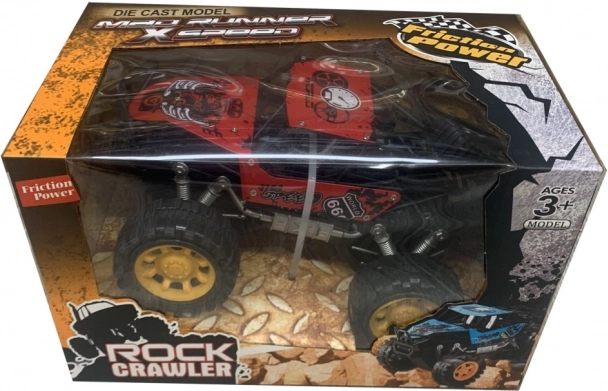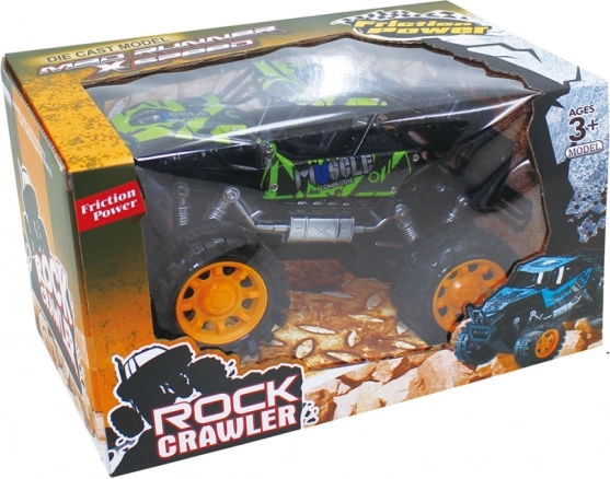 Ten wytrzymały model rock crawlera jest stworzony do przygód. Dzięki napędowi frykcyjnemu wystarczy przesunąć autko po podłożu i puścić – natychmiast ruszy do przodu. Duże terenowe koła i podwyższone zawieszenie poradzą sobie z przeszkodami, dywanami i nawierzchniami na zewnątrz.