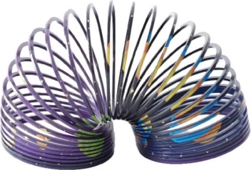 Kolorowa spirala do zabawy z nadrukiem planet. Tą spiralą będą się bawić zarówno młodsze, jak i starsze dzieci. Przelewa się z boku na bok, rozciąga jak sprężyna, skacze ze schodu na schód.