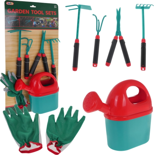- rękawice ok. 21,5 cm x 12,5 cm, szerokość w górnej części 7,5 cm do 10,5 cm, palce ok. 6 cm długości, .- duża konewka o wymiarach ok. 22 cm x 19,5 cm x 8 cm, .- motyczka ok. 26,5 cm x 10,5 cm x 4,5 cm, .- ręczny kultywator ok. 21 cm x 5,5 cm x 5 cm, .- nożyczki o wymiarach ok. 24 cm x 9 cm x 2 cm, .- grabki ok. 26 cm x 6,5 cm x 5 cm, .- opakowanie ok. 28 cm x 58 cm x 8 cm. . |