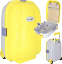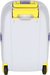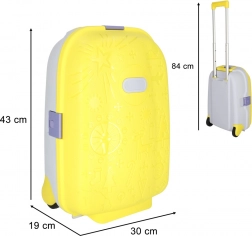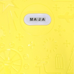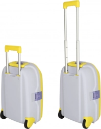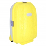 Lekka i wytrzymała dziecięca walizka kabinowa z dwoma kółkami i wysuwanym uchwytem dla wygodnego podróżowania. Oferuje dużą pojemność dzięki dwóm komorom, świecące kółka LED dla lepszej widoczności i zabawy oraz możliwość oznaczenia imieniem za pomocą naklejek. Jasny żółty kolor i radosne tłoczone motywy zachwycą każdego małego podróżnika.