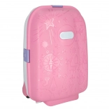 Solidna plastikowa skorupa, niska waga 2,2 kg oraz wysuwana teleskopowa rączka zapewniają wygodne i bezpieczne podróżowanie dla małych odkrywców.