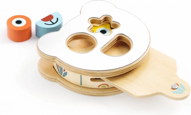 Ta urocza układanka z motywem misia marki Djeco łączy naukę i zabawę. Dzieci wkładają 3 geometryczne kształty do odpowiadających im otworów i układają misiową buzię. Po pociągnięciu za język misia kształty znikają – to zachęca do dalszych prób i rozwija ciekawość.
