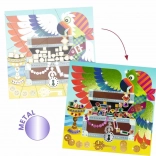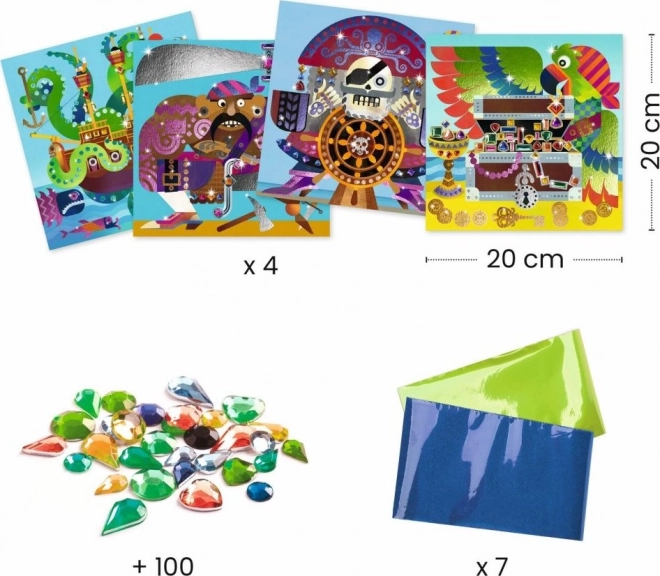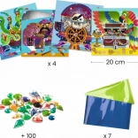 Ożyw przygody pirackie dzięki tej aktywności kolażowej, która umili czas każdemu małemu artyście. Twoje dzieci mogą cieszyć się dekorowaniem 4 obrazków o tematyce pirackiej za pomocą folii i kamyków.