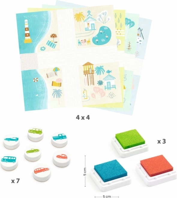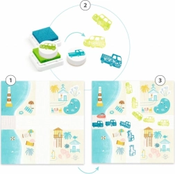 Zestaw stempelków Auto od DJECO to doskonałe narzędzie dla małych artystów, zawierające wszystko, co potrzebne do tworzenia pięknych obrazków z motywem samochodów. Dzieci mogą tworzyć własne sceny i historie używając kolorowych stempelków i kart.