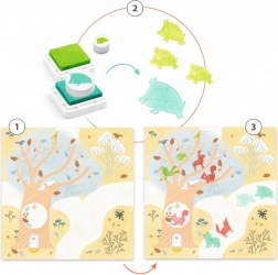 Zestaw stempli z motywem zwierząt, który ucieszy każde dziecko. Dzięki temu zestawowi dzieci mogą tworzyć urocze obrazki i jednocześnie rozwijać swoją kreatywność.