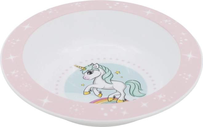 Dziecięca miseczka do jedzenia z magicznym motywem jednorożca wspiera radość z jedzenia i samodzielność przy stole. Ergonomiczny kształt dobrze leży nawet w mniejszych rączkach, a wytrzymałe wykonanie jest idealne do codziennego użytku.