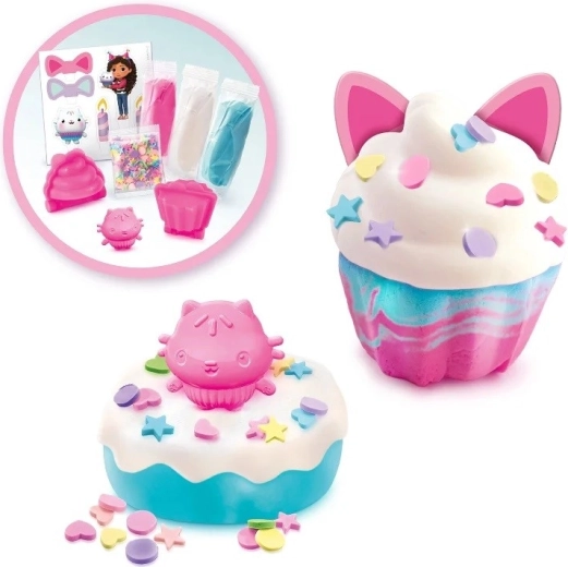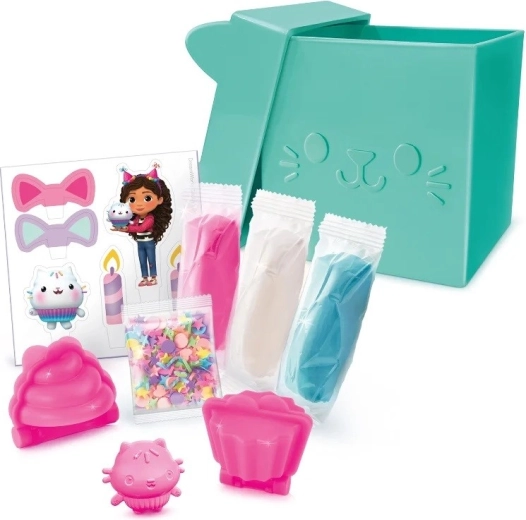 Urocze „kocie” opakowanie skrywa miękką i łatwą do modelowania masę, która inspiruje do pieczenia słodkości na niby. Dzieci mogą tworzyć babeczki, ozdabiać je i bawić się w małą cukierniczkę – wszystko w duchu ulubionej opowieści Gabi Koci Domek.