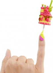 W środku czeka ponad 15 niespodzianek: szykowny strój, buty, biżuteria, stojak na lalkę oraz akcesoria do salonu paznokci – pilnik, 2 zestawy samoprzylepnych i wielokrotnie zdejmowalnych paznokci, brokat i 2 buteleczki „laku”. To wszystko w zabawnym, owocowym stylu, który pobudza kreatywność i rozwija motorykę małą.