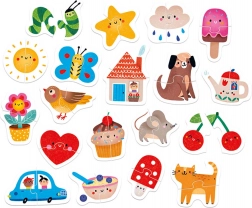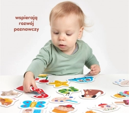 Zabawny zestaw dla najmłodszych miłośników puzzli oferuje urocze ilustracje pełne humoru i ciepła. Dzieci łączą odpowiednie połówki, uczą się rozpoznawać kształty i obrazki oraz nabierają pewności przy pierwszym układaniu. Każde poprawne połączenie to mały sukces, który wzmacnia pewność siebie.
