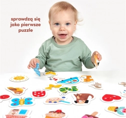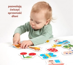 Odkryj pierwszą układankę dla najmłodszych! Moje pierwsze puzzle – pary zawierają 19 kolorowych, dwuelementowych obrazków, które motywują dzieci do zabawy i nauki. Ćwiczą spostrzegawczość, myślenie logiczne oraz małą motorykę w formie zabawy. Idealne dla dzieci rozpoczynających przygodę z puzzlami, z możliwością zabawy w rozpoznawanie kolorów, słów i wesołe zagadki.