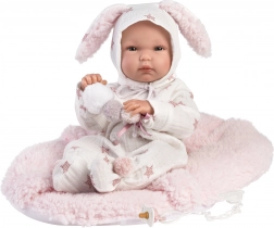 Zadbaj o doskonały komfort swojej lalki w pięknym ubranku z delikatnym króliczym motywem i gwiazdkami. Ubranko zaprojektowano dla lalek New Born o wielkości 35–36 cm, a dzięki precyzyjnemu ręcznemu wykonaniu w Hiszpanii wyróżnia się wysoką jakością i miękkimi, przyjemnymi w dotyku materiałami.