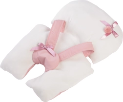 Miękka podkładka z dekoracyjną kokardą i bezpiecznymi paskami posłuży jako praktyczne krzesełko do stabilnego posadzenia lalki.