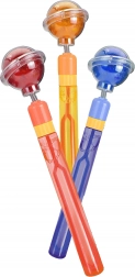 Spraw radość dzieciom świecącym bąbelkowym płynem z motywem planety – efekty świetlne aktywowane potrząsaniem, pojemność 70 ml i długość 28 cm. Dostępny w 4 kolorach; baterie 3× AG3 w zestawie (niewymienialne).