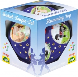 Dzięki praktycznemu górnemu uchwytowi dzieci z łatwością rozpędzą bączek. Podczas obracania wydaje charakterystyczny buczeniem dźwięk, który wspiera stymulację sensoryczną i zachęca do dalszej zabawy.
