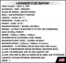 LOCKHEED F-22 Raptor to wysoce zaawansowany myśliwiec, który wyróżnia się manewrowością, technologią stealth oraz zdolnością do prowadzenia operacji powietrznych i naziemnych. Ten model od COBI imponuje detalami i należy do kolekcji Armed Forces.