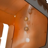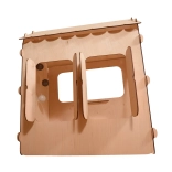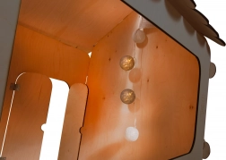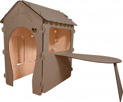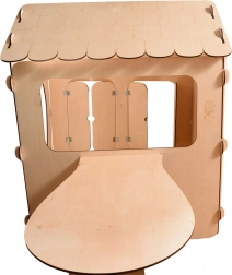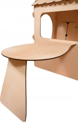 Boczny stolik zapewnia przestrzeń do rysowania, zabawy lub innych aktywności. Dodaje interaktywności całemu domkowi.