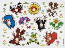 Ta duża drewniana układanka z motywami KRECIKA i jego przyjaciół oferuje dzieciom od 2 lat naukę przez zabawę. Każdy element ma drewniany guziczek ułatwiający chwytanie, dzięki czemu dzieci łatwo trenują prawidłowe dopasowywanie kształtów do otworów w płycie bazowej.
