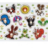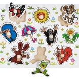 Odkryj radość nauki z drewnianą układanką wpuszczaną KRECIK i jego przyjaciółmi. Kolorowe elementy z praktycznymi uchwytami ułatwiają małym rączkom manipulację, wspierają motorykę małą, koordynację oraz rozpoznawanie kształtów. Wykonano z wysokiej jakości drewna z odpowiedzialnych źródeł i z miłością w Czechach.