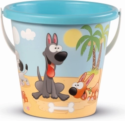 Średniej wielkości wiaderko do piasku z motywem wesołego pieska, wyprodukowane we Włoszech z wysokiej jakości tworzyw sztucznych. Idealne dla małych budowniczych od 10 miesięcy. Solidna i lekka konstrukcja zapewnia łatwe przenoszenie.