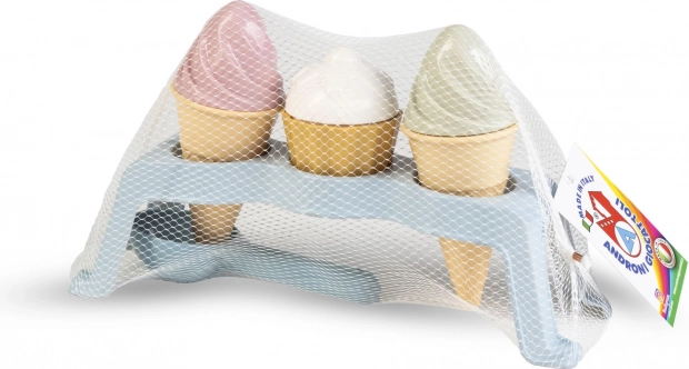Zamieńcie piaskownicę w małą lodziarnię! Ten wesoły zestaw zawiera wszystko, czego dzieci potrzebują do tworzenia „gałek” i babeczek – od rożków, przez foremki, po praktyczny stojak. Wytrzymały i łatwy do umycia plastik zapewnia długą żywotność i frajdę z zabawy na plaży i w ogrodzie.