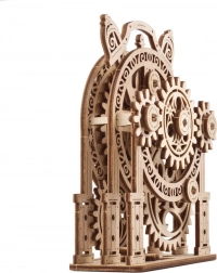 W zestawie znajduje się szczegółowa instrukcja, precyzyjnie wycinane elementy oraz przemyślany układ kół z asynchronicznym przełożeniem, który obrazowo pokazuje zależność między wskazówką godzinową a minutową. Model można według uznania pomalować (polecane farby akwarelowe), tworząc w ten sposób oryginalną dekorację wnętrza.