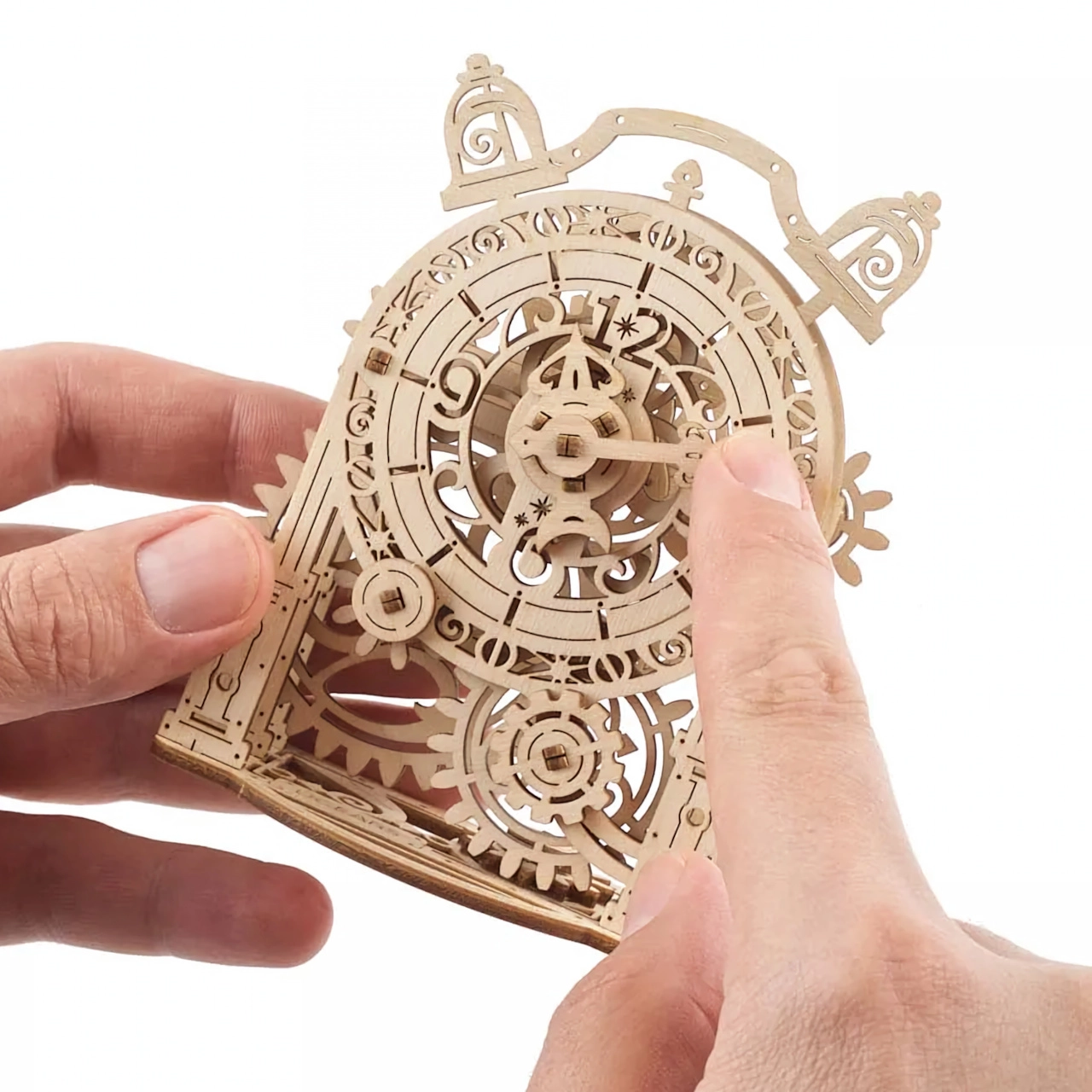 Złóż nostalgiczny dekoracyjny budzik z naturalnego drewna i ciesz się wyjątkowym połączeniem zabawy, edukacji i designu. Model wyróżnia się bogatymi ornamentami, realistycznym ruchem wskazówek oraz delikatnym stukaniem kołyszących się dzwonków. Dzięki niskiemu poziomowi trudności nadaje się dla początkujących i młodych konstruktorów od 14 lat.