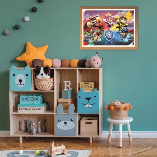 Licencjonowane puzzle z bohaterami z PAW PATROL: THE MIGHTY MOVIE wyróżniają się intensywnymi kolorami i atrakcyjną sceną, która motywuje do układania.
