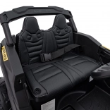 Miękkie siedzisko z eko skóry z pasami bezpieczeństwa trzyma małego kierowcę pewnie na miejscu. Pilot 2,4 GHz oferuje trzy prędkości i awaryjny przycisk Stop, dzięki czemu zawsze masz pełną kontrolę nad jazdą.