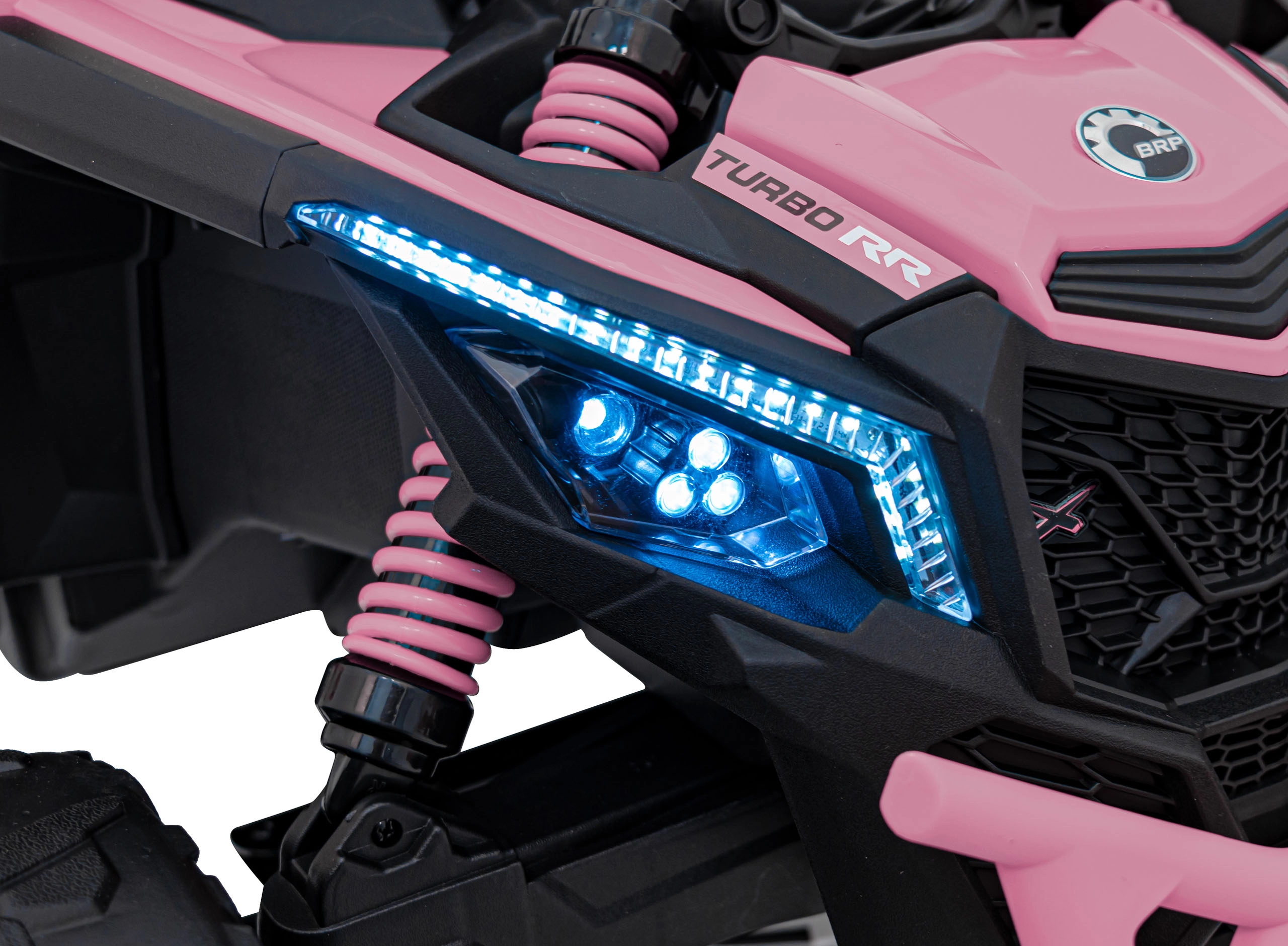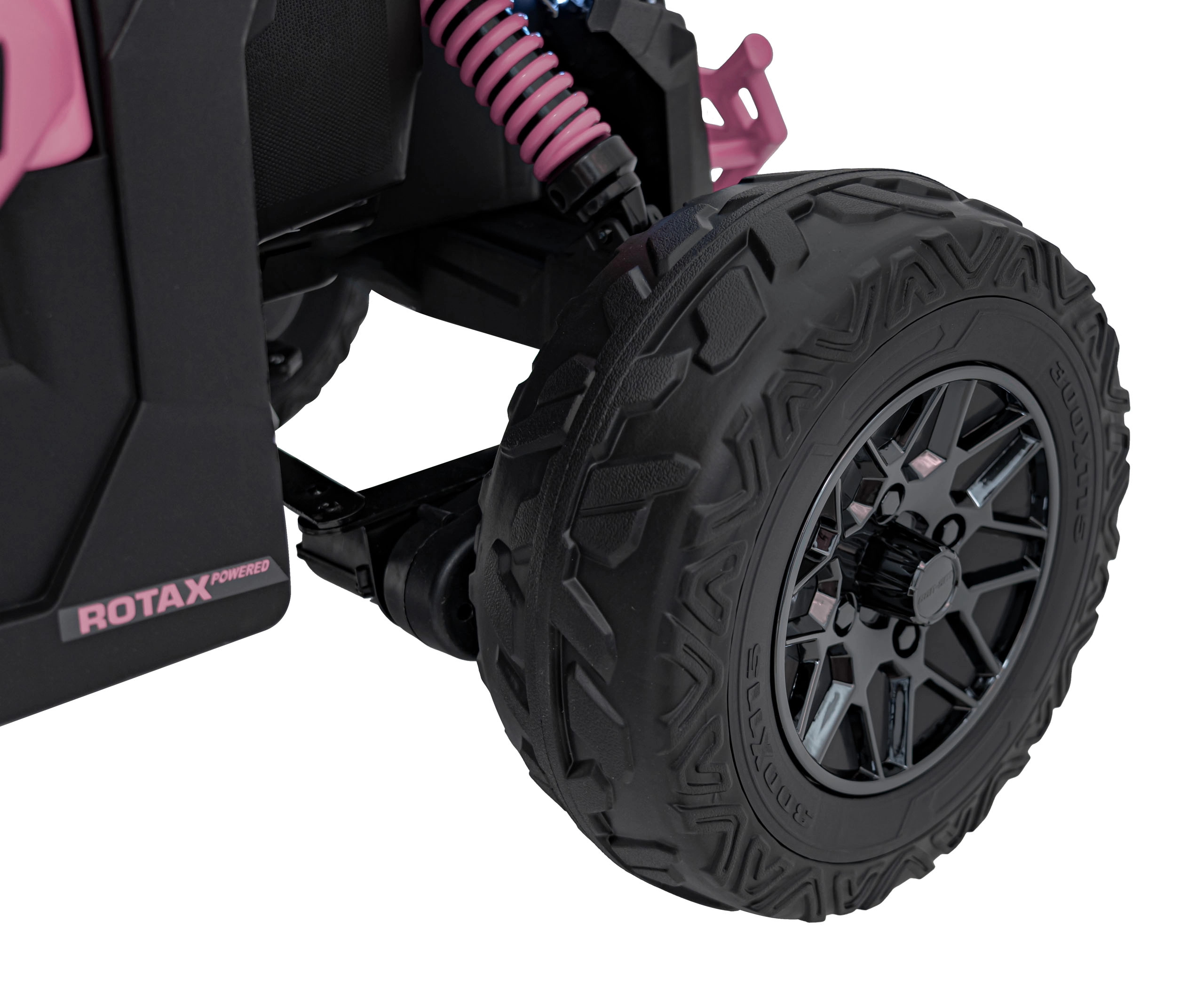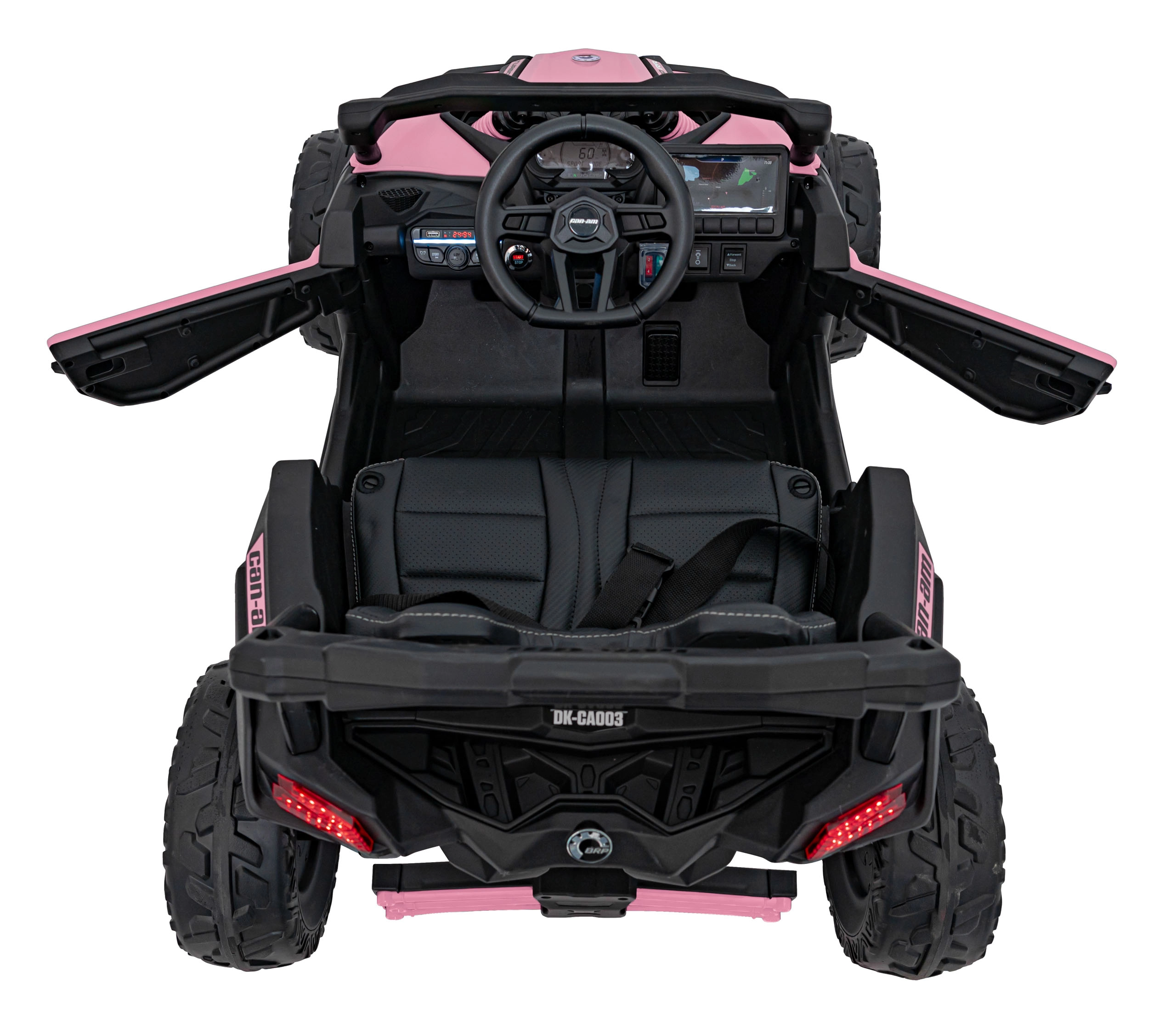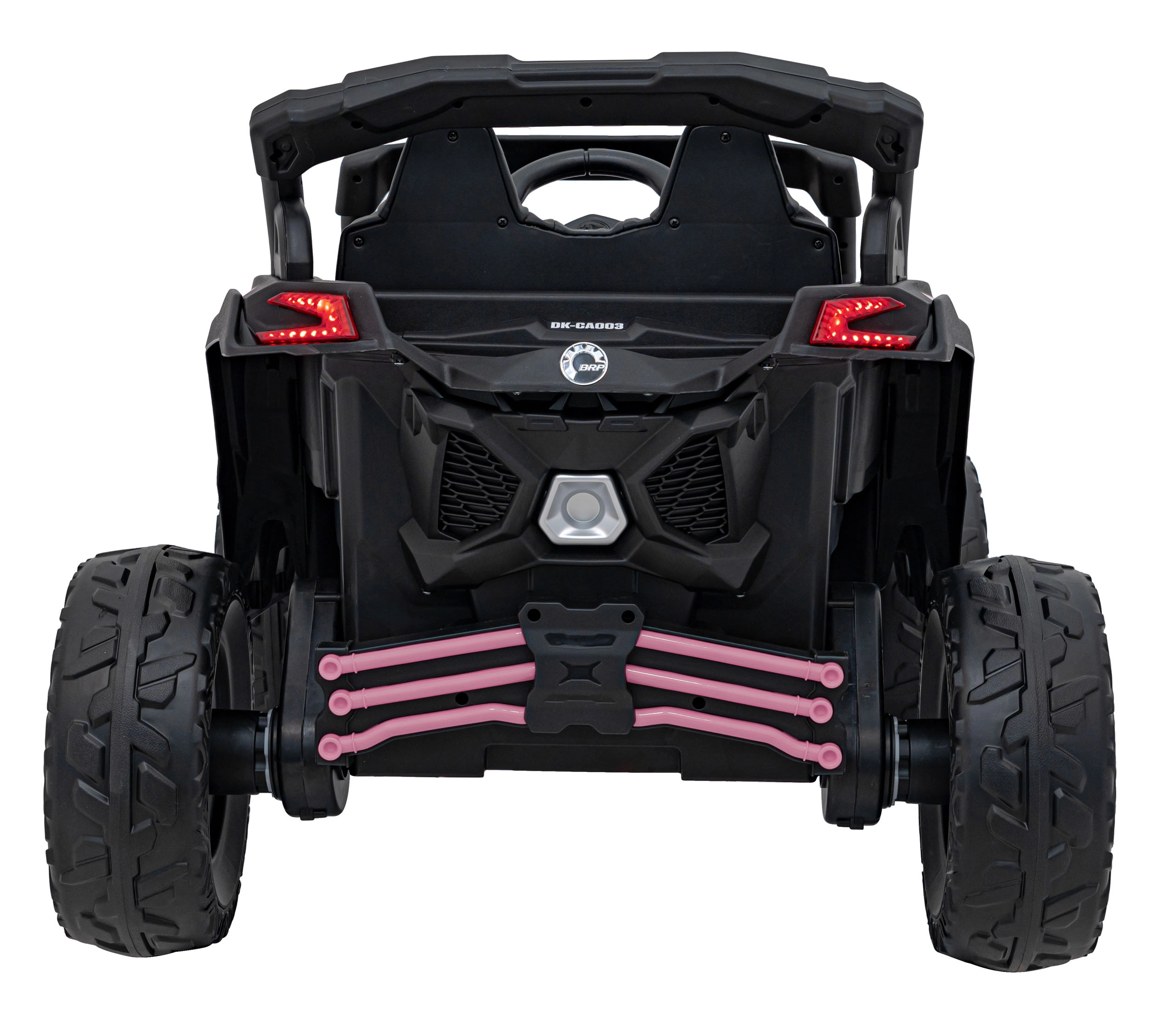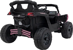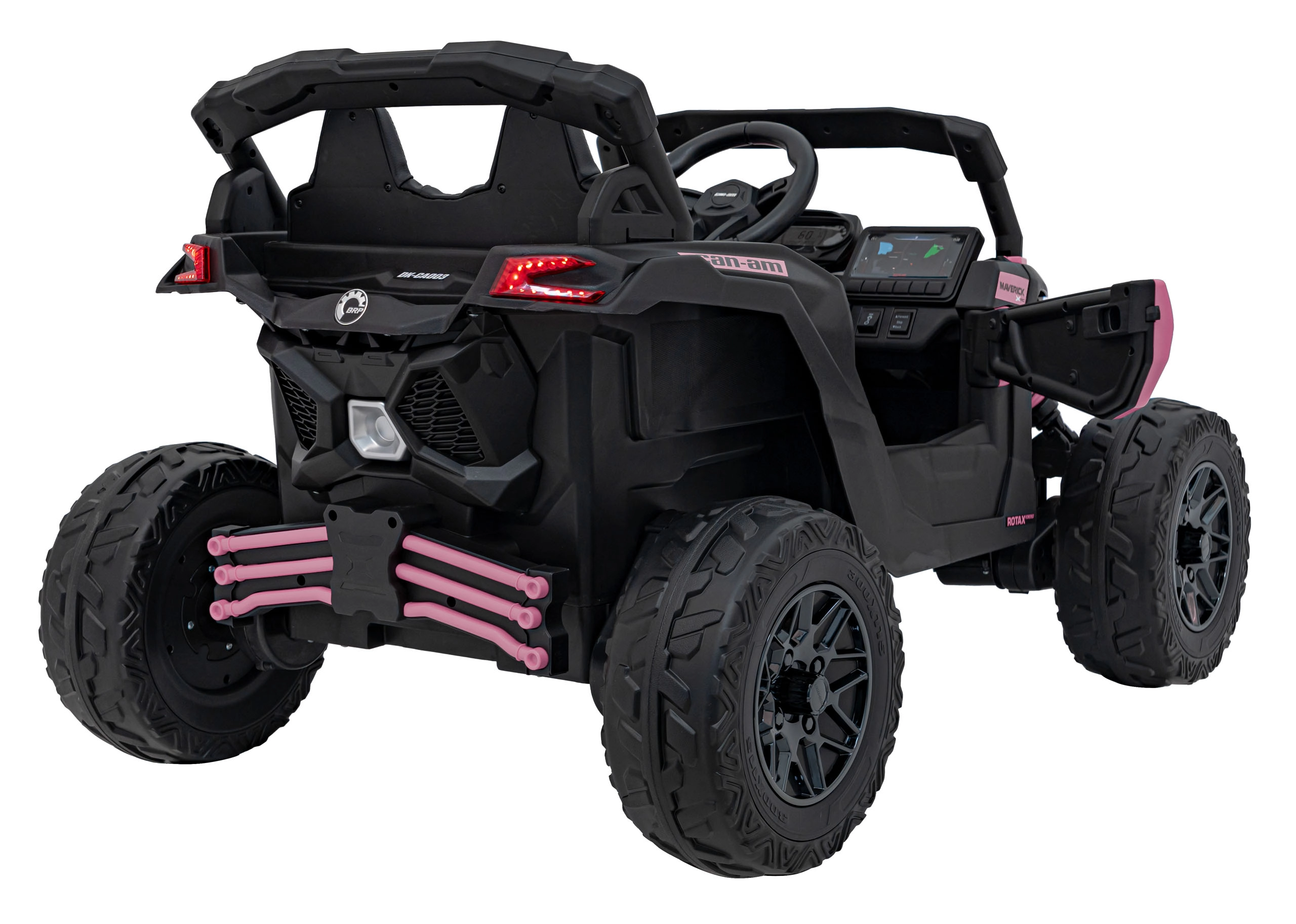 Różowy elektryczny samochód dla dzieci CAN-AM Maverick stworzono dla małych odkrywców. Dzięki napędowi 4×4 z możliwością wyboru 2×4/4×4, miękkim kołom EVA oraz przedniemu zawieszeniu, pewnie pokonuje nierówności. Płynny start Soft Start i elementy bezpieczeństwa, takie jak pasy i zdalny pilot, zapewniają maksymalną kontrolę i spokój rodzicom.