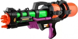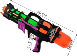 Ten pistolet wodny łączy rozmiar, wydajność i wygodę. Ogromny zbiornik o pojemności 1,25 litra wydłuża zabawę bez częstego dolewania, a zasięg ok. 6 metrów zapewnia imponujący strumień wody. Obsługa jest prosta: odkręć zbiornik, napełnij wodą, zamknij i przy pomocy dolnego suwaka napompuj – gotowe do strzelania.