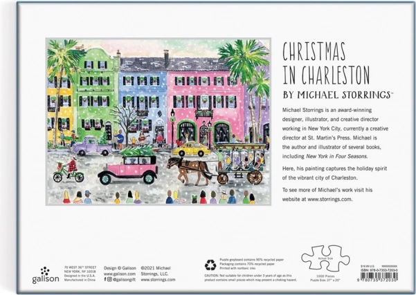 Poznaj urok malowniczych ulic Charleston podczas sezonu świątecznego dzięki puzzlom Święta w Charleston od Michaela Storrings. To dzieło sztuki nie tylko zapewnia wspaniałą możliwość relaksu, ale także rozwija twoje logiczne myślenie i zdolności do szczegółów.