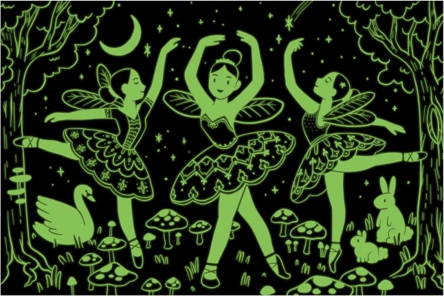 Złóż olśniewającą scenę taneczną prosto z Jeziora Łabędziego z puzzli, które świecą w ciemności! Zawiera 100 elementów z eleganckimi tancerkami, które w ciemności zmieniają się w wróżki na magicznej polanie.