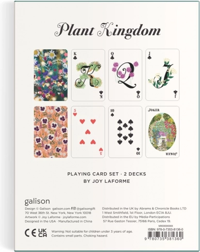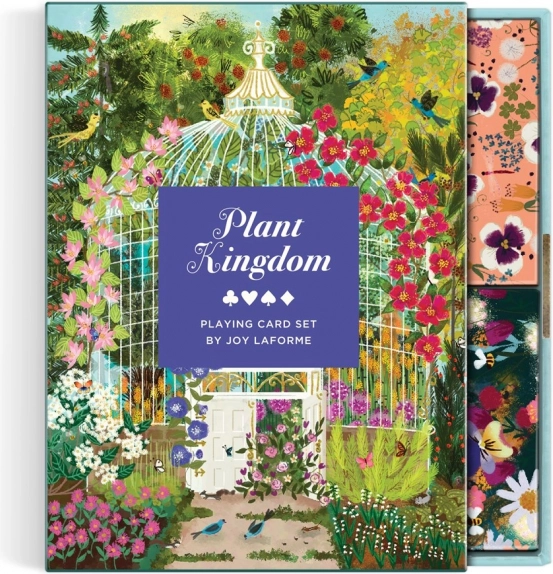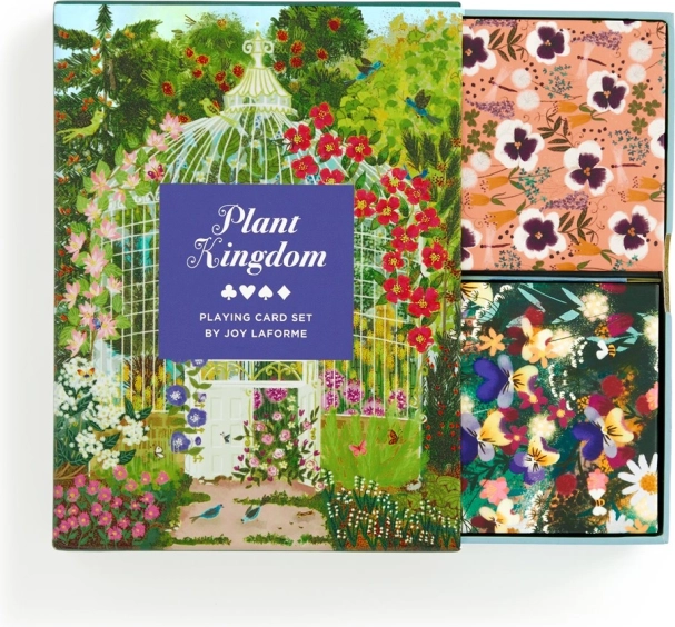Zestaw kart do gry Królestwo Roślinne od Galison łączy w sobie piękno natury i artystyczny dotyk Joy Laforme. Dwa zestawy kart zawierają unikalne motywy kwiatów i ogrodów, które przenoszą cię do świata pełnego kolorów i harmonii. Karty nie tylko zachwycają swoją urodą, ale także przynoszą radość podczas każdej gry.