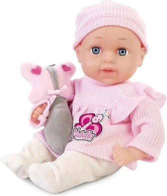 Lalka NATALIA bobas 33 cm ucieszy wszystkie małe opiekunki. Miękkie ciałko jest delikatne i bezpieczne do przytulania, dlatego bobas nadaje się zarówno do zabawy w ciągu dnia, jak i do spokojnego zasypiania. W zestawie znajduje się także urocza zabawka, która rozwija wyobraźnię i wspiera motorykę małą.