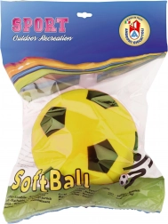 Ta żółta piankowa piłka z piłkarskim wzorem dostarcza dzieciom i dorosłym mnóstwo radości bez obaw o stłuczenia czy urazy. Lekka pianka dobrze tłumi uderzenia, dlatego nadaje się do salonu, przedszkola i sali gimnastycznej. Dzięki średnicy 19,4 cm wygodnie leży w dłoni i jest odpowiednia do pierwszych rzutów, chwytania oraz prostych gier z piłką.