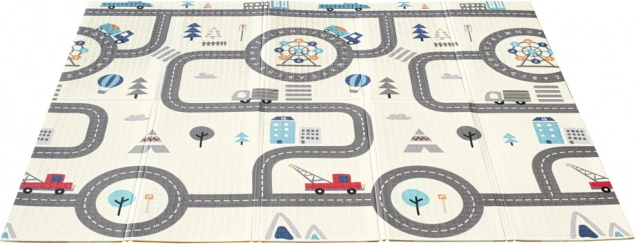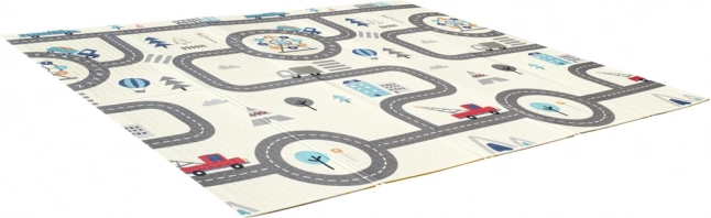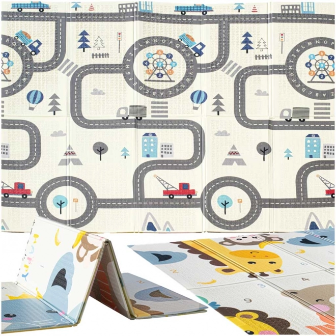 Dwustronna piankowa mata dla niemowląt ma nie tylko wartość estetyczną, ale także edukacyjną! Z jednej strony są rysunki uroczych zwierzątek, a z drugiej plan miasta - idealna ścieżka dla maluchów!